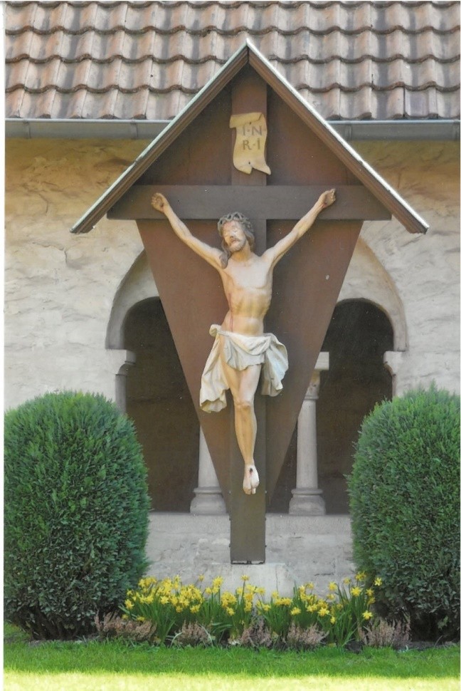 Im Kreuzgang herrscht meistens Stille, die beim Durchschreiten von Säule zu Säule beruhigend und nachdenklich stimmen kann. Der Blick wird dabei oft in den Innenhof gelenkt, in dem ein großes Kreuz steht. Es erinnert an den Leidensweg Jesu, der mit seinem Tod am Kreuz endete.